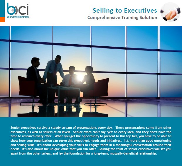 Senior executives survive a steady stream of presentations everyday. These presentations come from other executives, as well as sellers at all levels. Senior execs can’t say ‘yes’ to every idea, and they don’t have the time to research every offer.